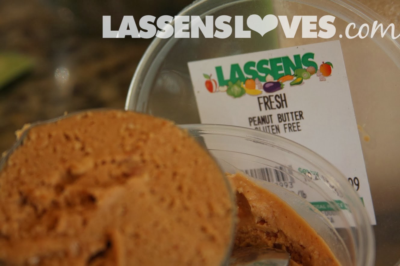 - Add 1/2 cup Lassen’s freshly ground peanut butter. (100% peanuts! Not lard or sugar, as you’ll find in national-brand peanut butters!)