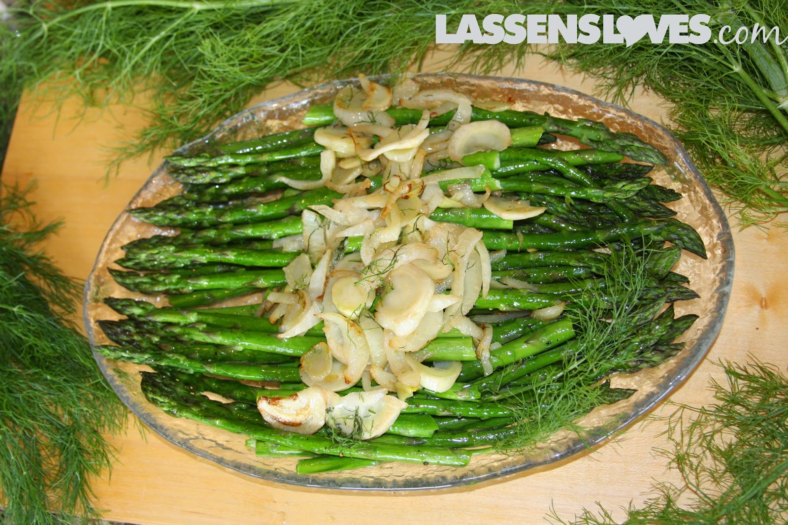 - Spoon the fennel onto the top of the asparagus, sprinkle with the chopped fennel leaves, and serve!